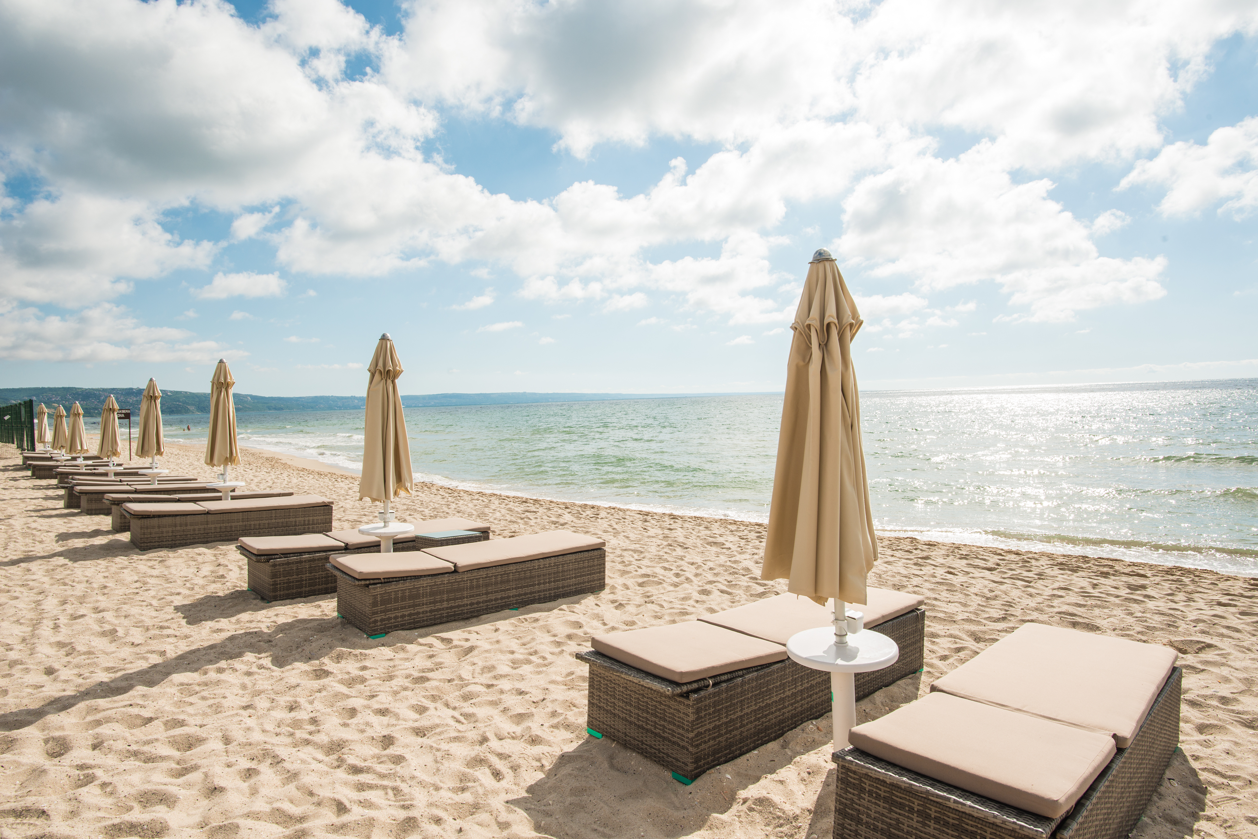 The newly opened Algara Beach Hotel is situated on the very beach in the southern part of the quiet resort village of Kranevo. The combination of warm sea, golden sand and beautiful gardens is a guarantee for а complete and harmonious rest. The name has a Proto-Bulgarian origin. Algara is a symbol of the beginning and the desire for spiritual and physical comfort. The complex offers its guests 155 comfortable and luxurious rooms, distributed in 4 buildings as well as 12 spacious family villas. All accommodation units located on a higher than 1-st floor are accessible with elevators. The all inclusive program allows our guests to taste the various temptations of Bulgarian and World cuisine. There are: 1 main buffet restaurant, 1 themed Bulgarian à la carte restaurant and 1 themed Mediterranean à la carte restaurant. In addition we can mention the Lobby bar and the Beach snack bar with service on the beach itself. The hotel's park stretches over an area of 85,000 square meters, making it a great place for peaceful walks. The sunbeds and parasols on our beach and by the pool are free of charge for our guests as well as the pool towels. We have also taken care of the good condition of our guests. The complex has a football, volleyball and basketball court, a tennis court, a tennis table as well as beach volleyball courts. A special highlight in our product is the “Katta Macht Urlaub” concept, developed by Schauinsland, which makes children's animation a real adventure. Adults will also be properly entertained - sports activities, party games, show programs and live music evenings. Royal Club accommodation offers an even higher standard of furnishings, check-in priority, free minibar, imported alcohol at the bars, luxury toiletries, an espresso coffee maker and other privileges.