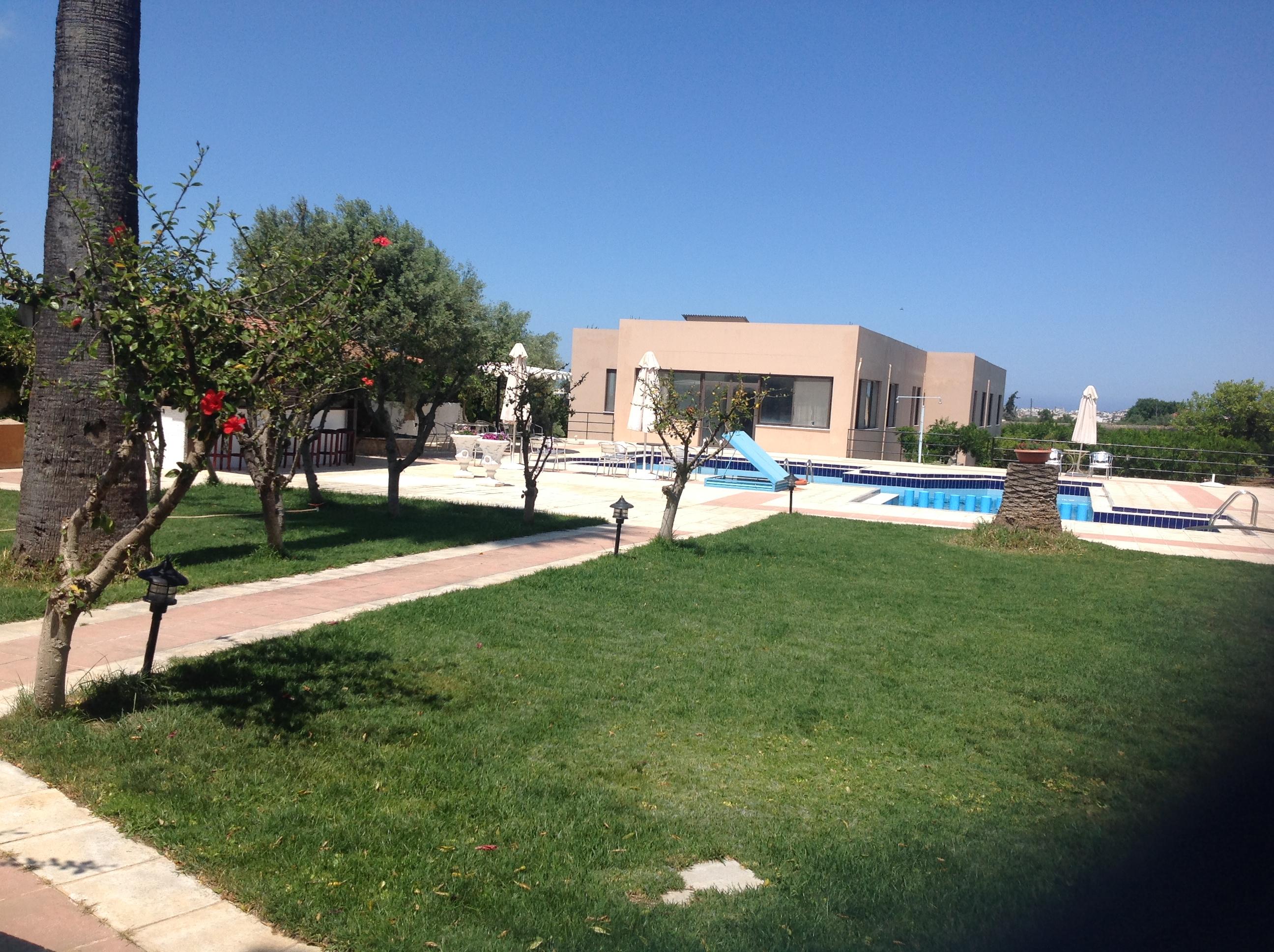 This property is located 2,5 km from Khania city in Crete and near the village of Perivolia, in a breathtaking garden of palm trees, orange trees and mandarin trees . The property was existing from 16th century as a mansion of a venetian, Turkish, and finally Greek owner and was refurbished in 1988 into a traditional hotel. In the property were added another 2 buildings in more modern style and was partly renovated in 2005. Now the property has one main floor and 3 buildings. There are a total of 46 rooms on the premises. The property consists of 25 double rooms, 12 triple rooms, 4 quadruple rooms and 5 superior triple rooms. Guests may take advantage of the on-site car park.