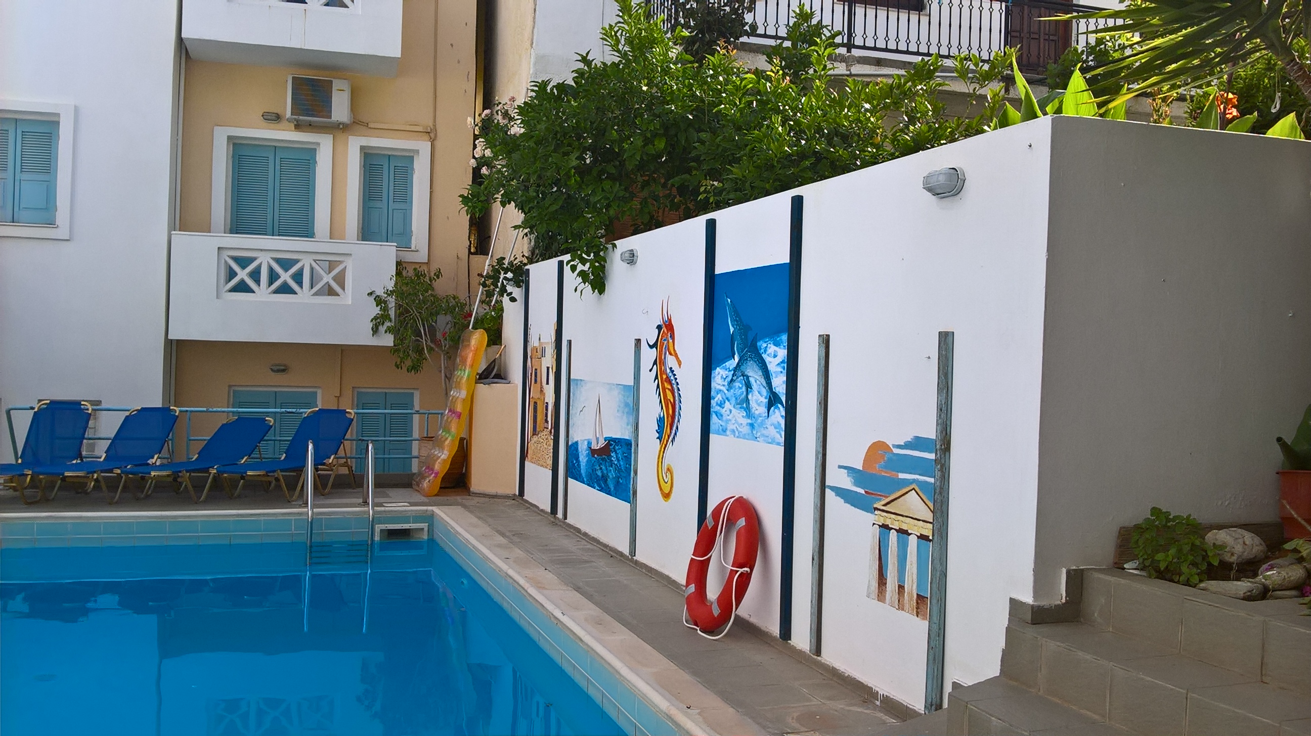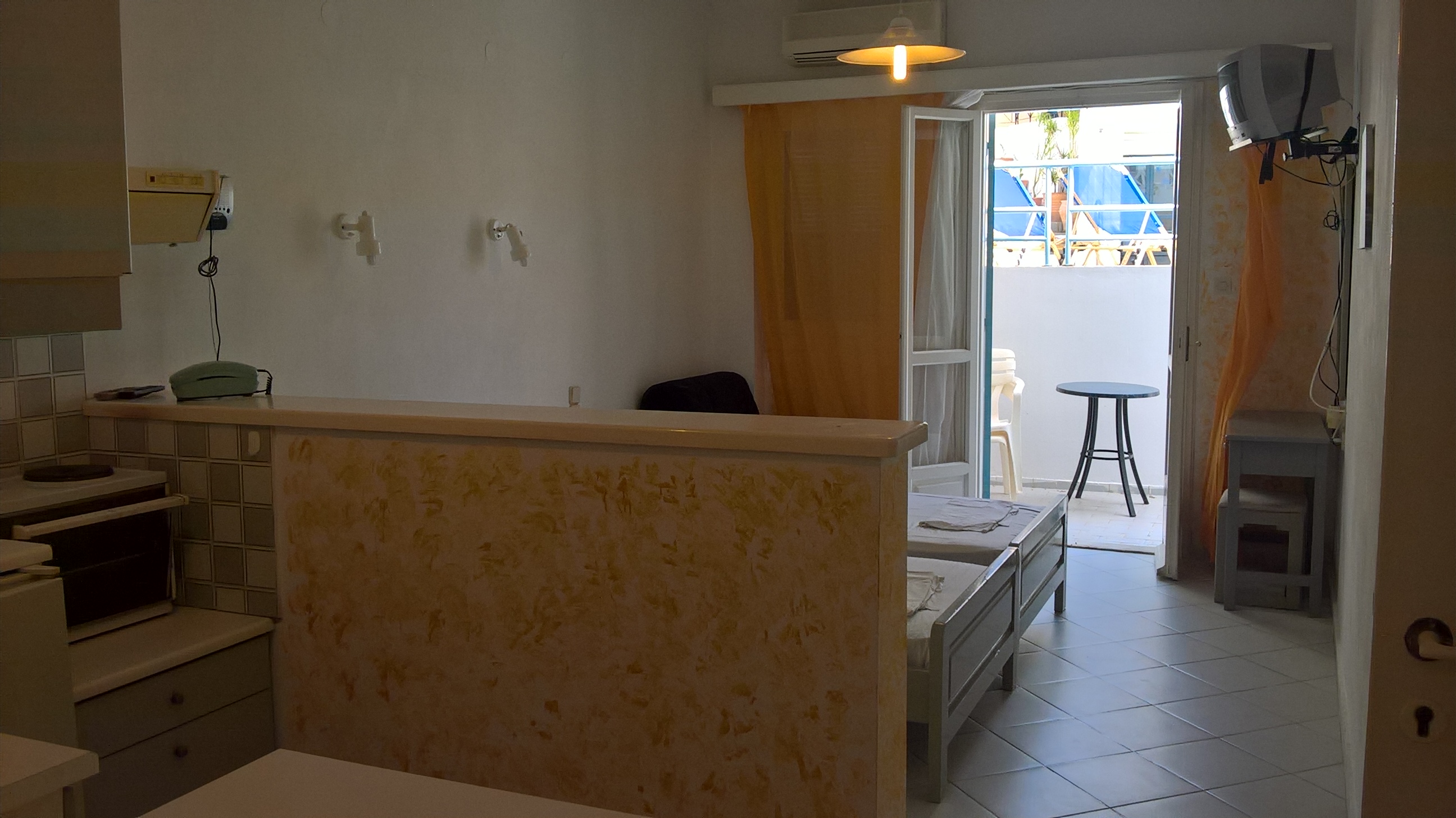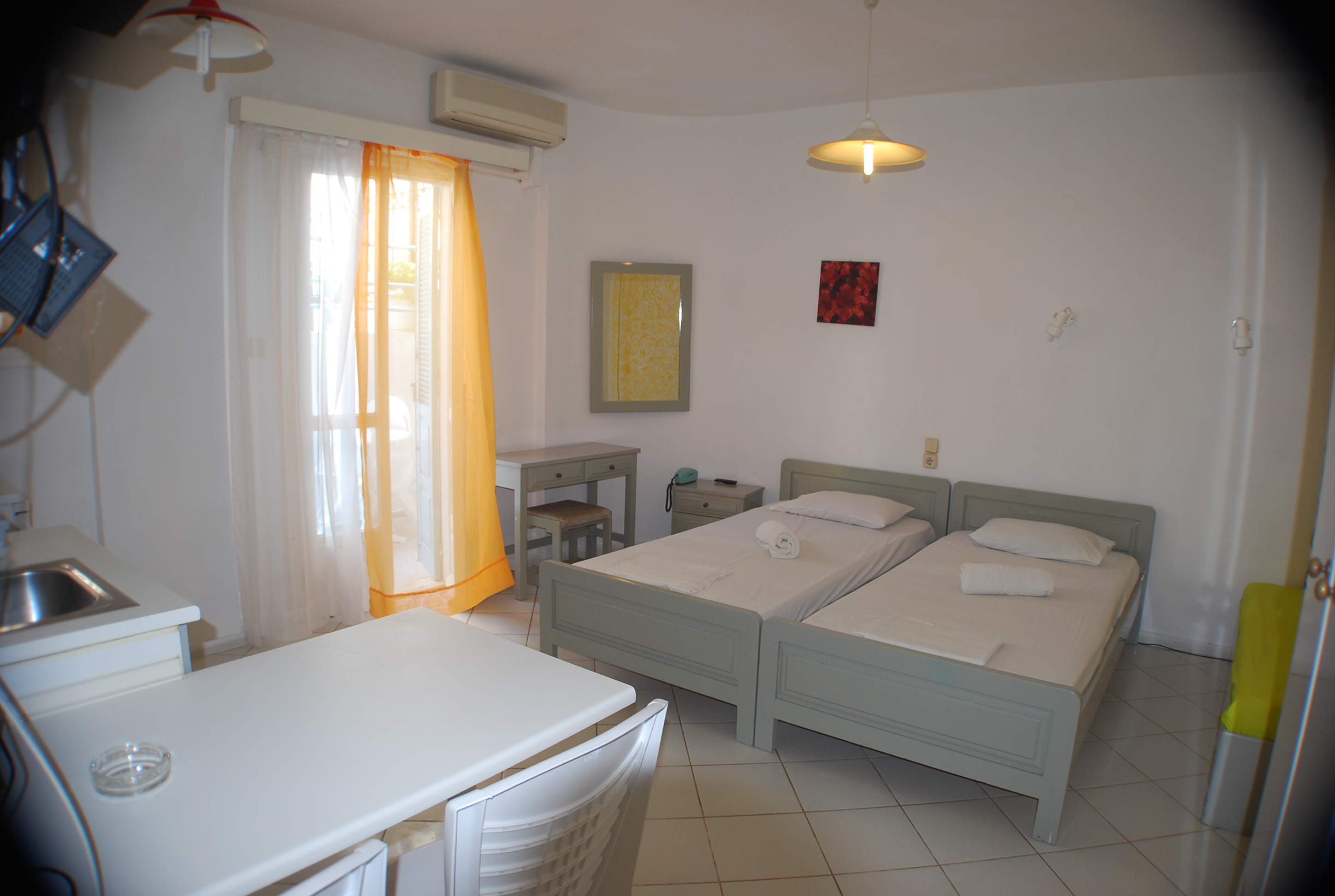 Renia Studios is located in the center of the village of Agia Pelagia. The sandy beach is just 2 minutes walk away, as well the shops and the restaurants. An off site car parking is available near the studios. Room Facilities Renia Studios. All rooms have a hairdryer, tv, air-condition, kitchenette and balcony. Smoking is not allowed in the rooms, but it is allowed on the balcony, as well as in public areas of the hotel. Wifi internet access is available free of charge. Tea and coffee making facilities are available in every room, which also feature a refrigerator. Leisure Info. Leisure facilities are available at the Renia Hotel Apartments. The hotel has an outdoor swimming pool. Adventurous guests can choose from activities including mountain biking with our mountain bike hire, fishing, horse riding and sailing. Other Info. The hotel offers an airport shuttle service with a fee. Pets are not allowed in the hotel. Please specify the time of your arrival. Please contact us for your requests.