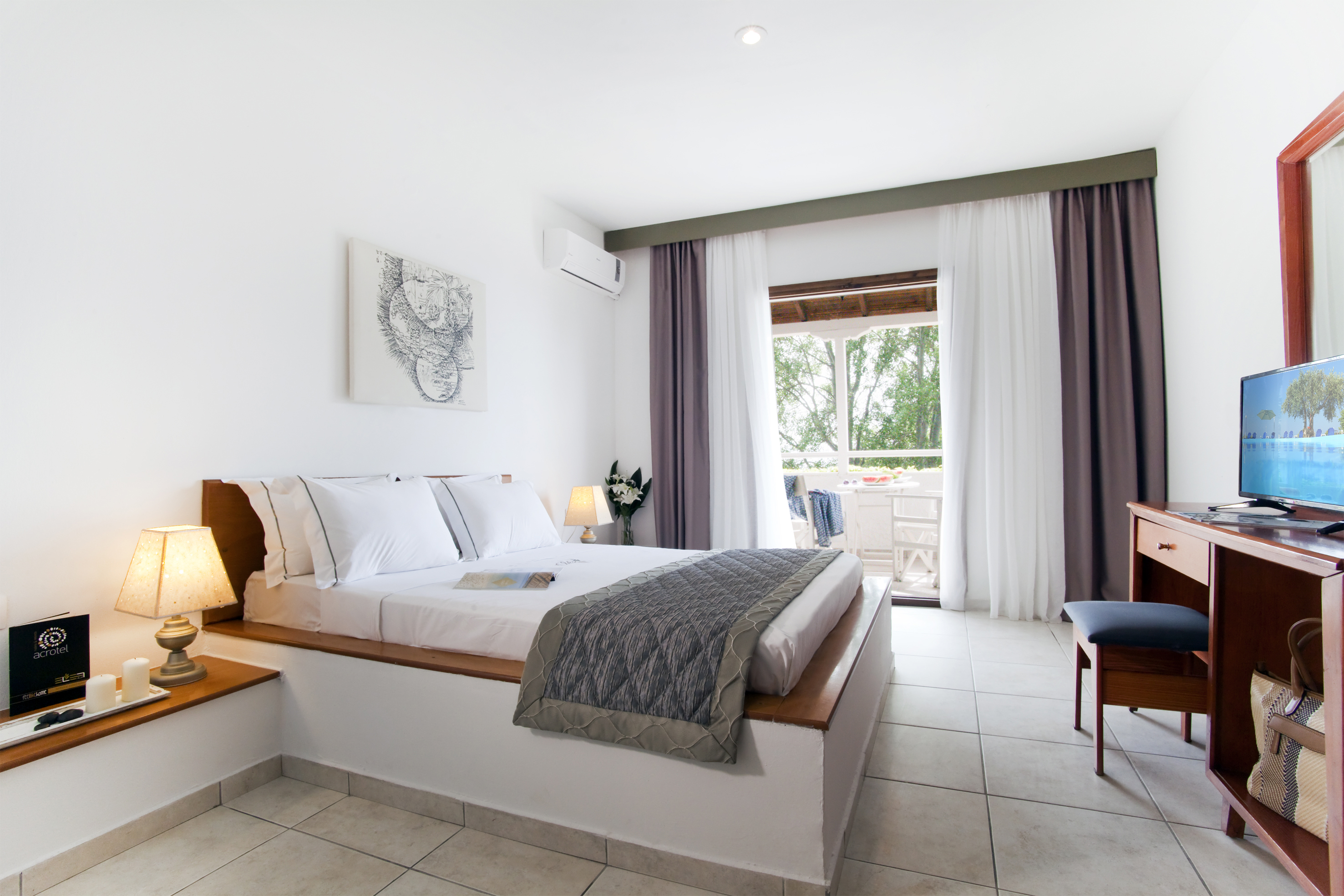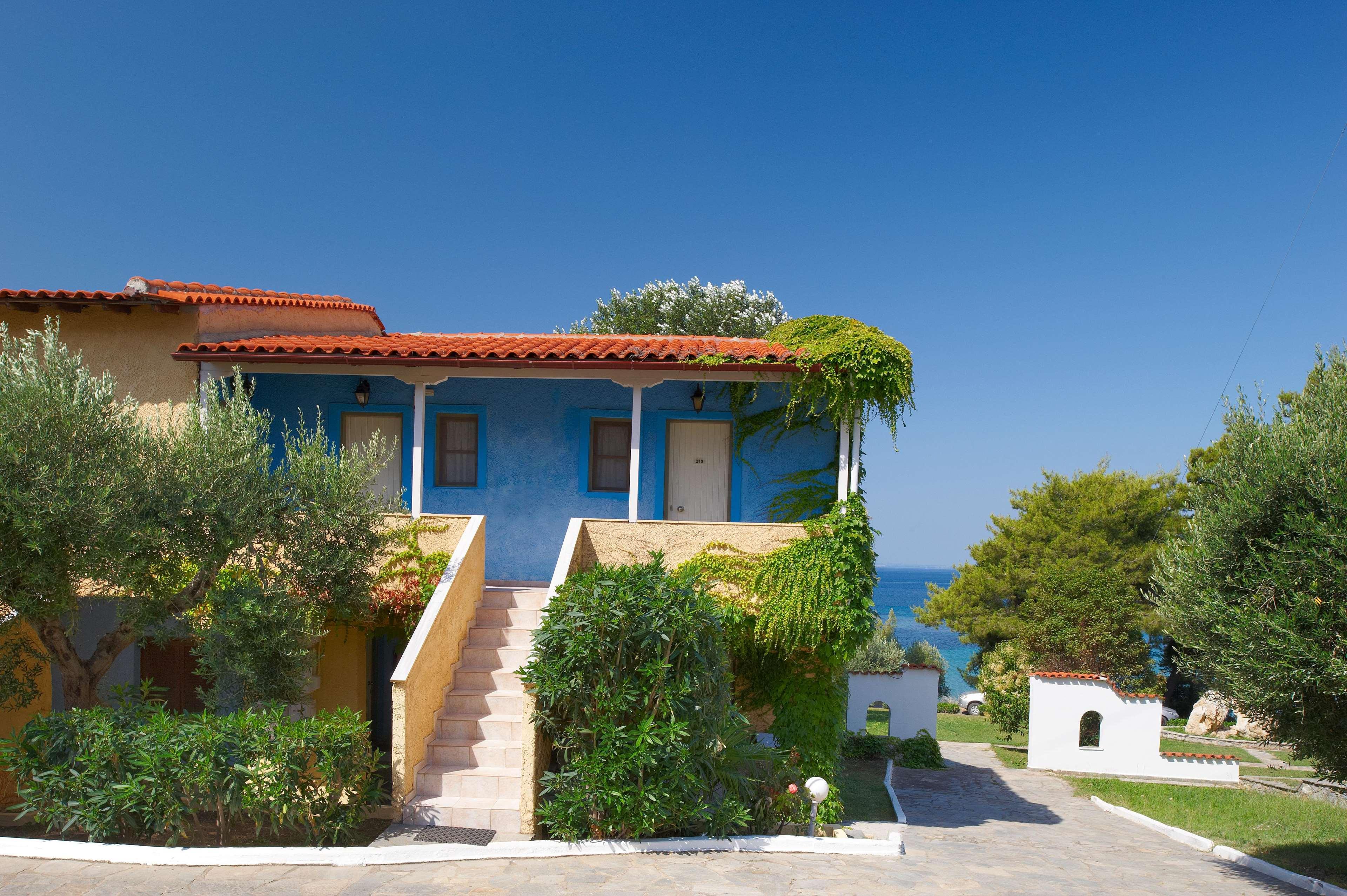 This charming complex is located in the area of Elia Beach, in the peninsula of Sithonia/Halkidiki, which is close to the picturesque villages of Nikiti and Neos Marmaras, where guests will find a lot of bars, dining opportunities and shopping venues. The accommodation options range from the double rooms, some featuring sea views, to the family apartments ideal for visitors travelling with children. The hotel encompasses a magnificent area of 18,600 sqm and includes beautiful gardens which are surrounded by olive and palm trees, ideal to forget all worries and just take in the beautiful scenery. Guests can also take advantage of the useful services and amenities, and will have the chance to taste some of the delicious Mediterranean and Greek flavours served at the restaurants. The facilities also include an outdoor pool surrounded by sun loungers and umbrellas, ideal to sunbathe and enjoy a nice swim.