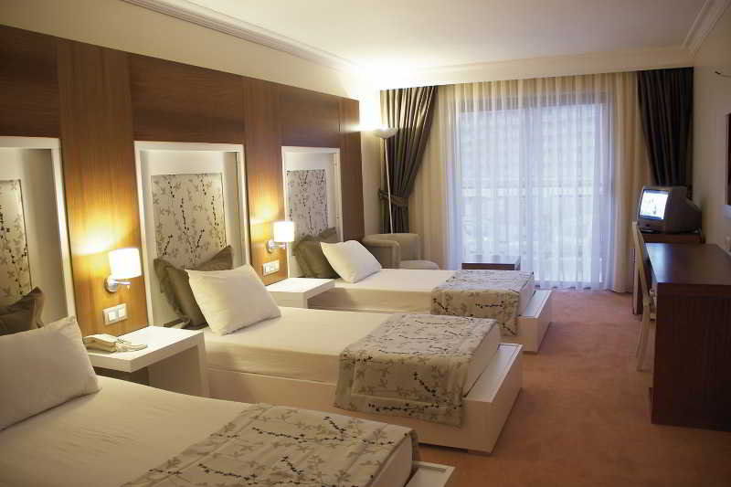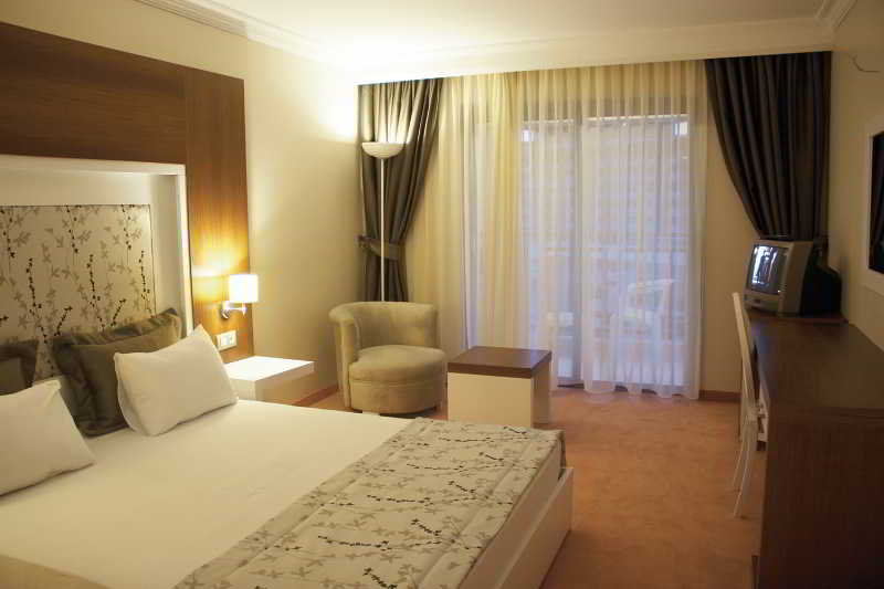 The hotel offers a great location on Kusadasi's famous Long Beach, overlooking the Aegean Sea and the Greek island of Samos. Public transport connections can be found in front of the hotel. The beach is also just a few metres away. The bus station is around 5.5 km away. Milas Airport is around 120 km away, while Adnan Menderes Airport is approximately 88 km away from the establishment. The air-conditioned, beachfront property was renovated in 2012 and consists of a main building and an annexe, comprising a total of 102 rooms. The hotel is suitable for couples and families. The rooms are decorated in muted tones and feature a balcony or terrace. The hotel offers a range of recreational facilities, including an outdoor swimming pool with a children's swimming area and a poolside snack bar. Guests can also relax in the sauna and steam room, or try their hand at a range of water sports.