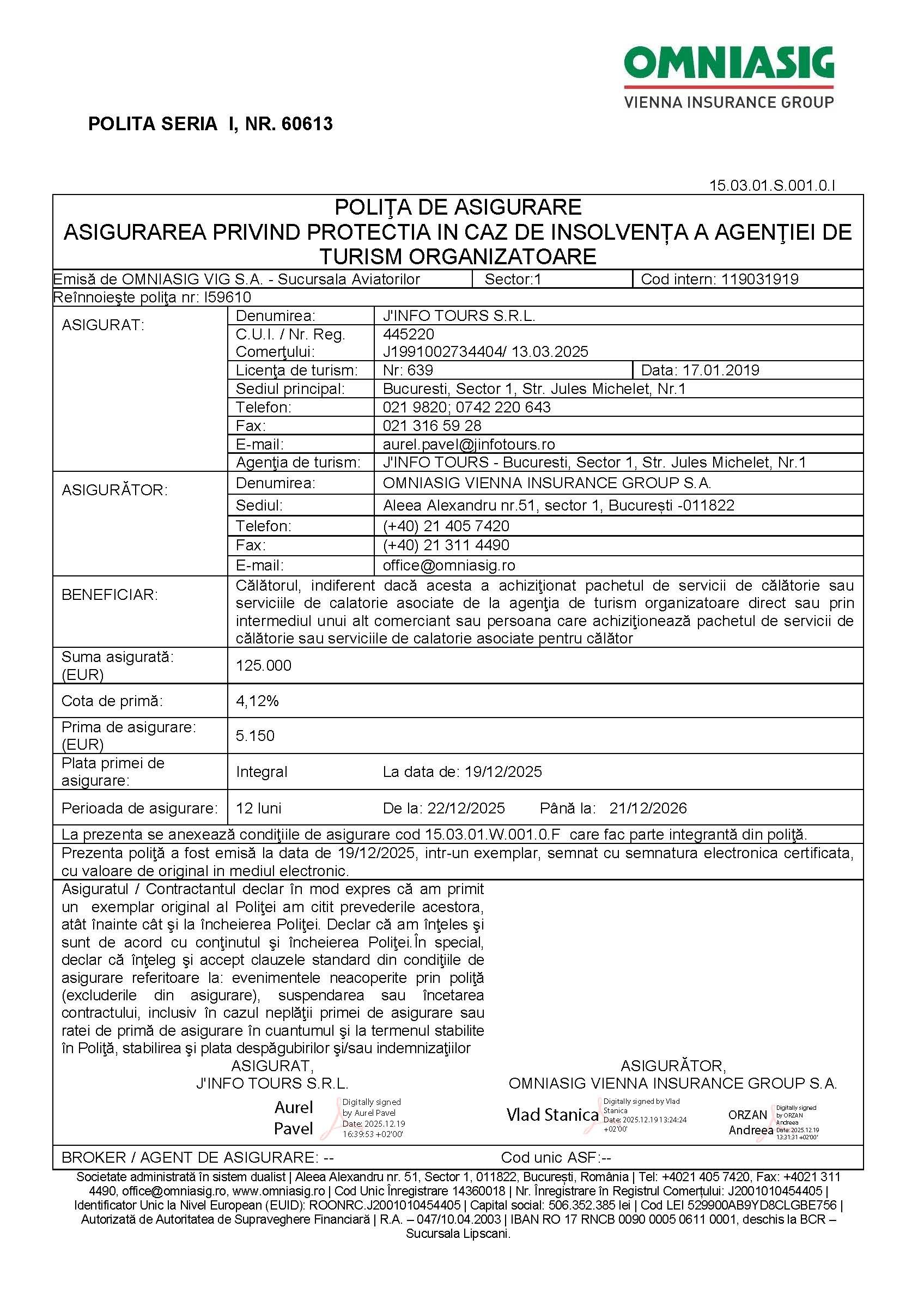 | Poliță de asigurare: | OMNIASIG Seria I nr. 58169 |